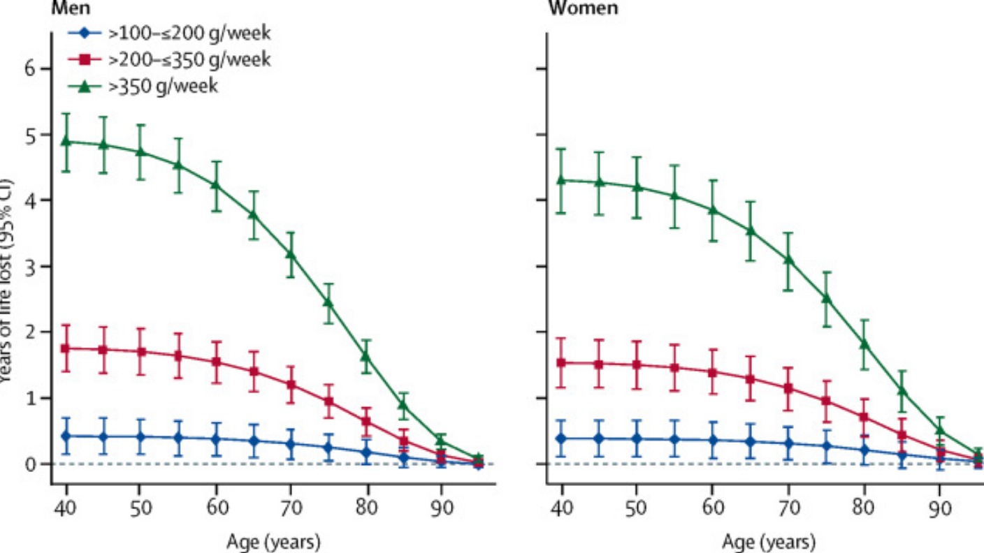 In one study which examined people with and without alcohol use disorder from 1987 to 2006 it was discovered that life expectancy was 24 to 28 years shorter in alcoholics. The study of 600000 drinkers estimated that having 10 to 15 alcoholic drinks every week could shorten a persons life by between one and two years. One the one hand we all know how bad heavy drinking is for you.